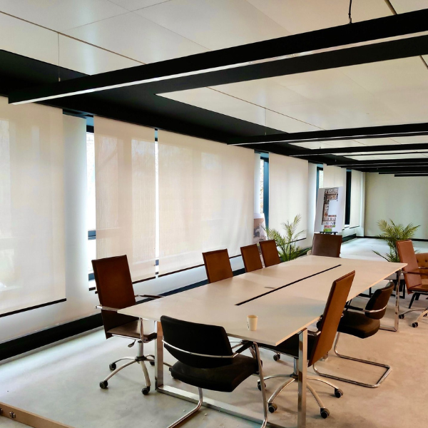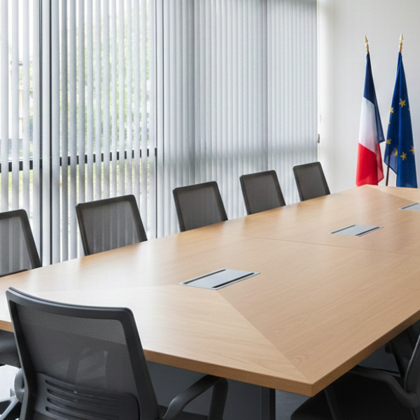 Le store à bandes verticales anti-feu M1 est particulièrement adapté aux salles de réunion des mairies. Il permet une gestion précise de la lumière tout en conservant une atmosphère professionnelle et institutionnelle.
