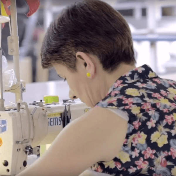 Une fois le tissu découpé, il passe entre les mains expertes de nos couturières, spécialisées dans la confection de stores bateaux. Elles commencent par tracer l’emplacement des gaines qui accueilleront les raidisseurs en fibre de verre. Ensuite, elles réalisent les opérations suivantes avec précision :