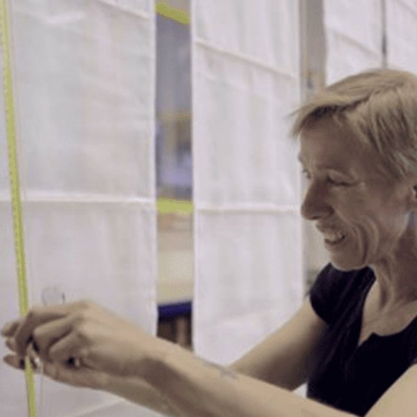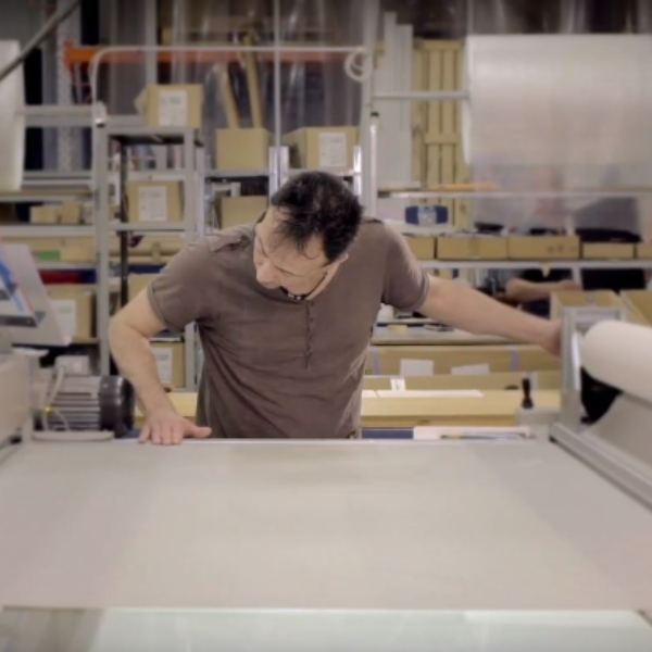 Chaque geste compte : cette étape de confection du tissu pour store bateau est essentielle pour assurer un repli fluide du tissu et un rendu visuel soigné une fois le store installé.